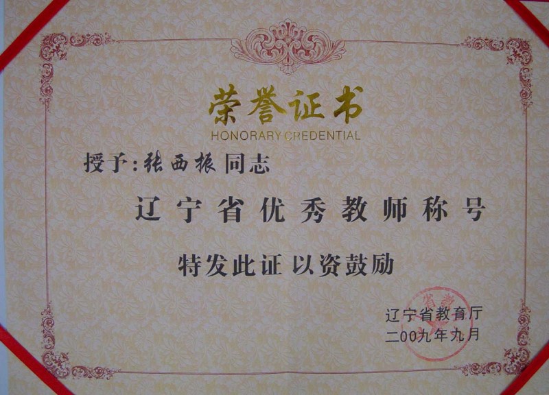 祝贺道桥系荣获“先进集体”、张西振同志荣获“辽宁省优秀教师”荣誉称号
