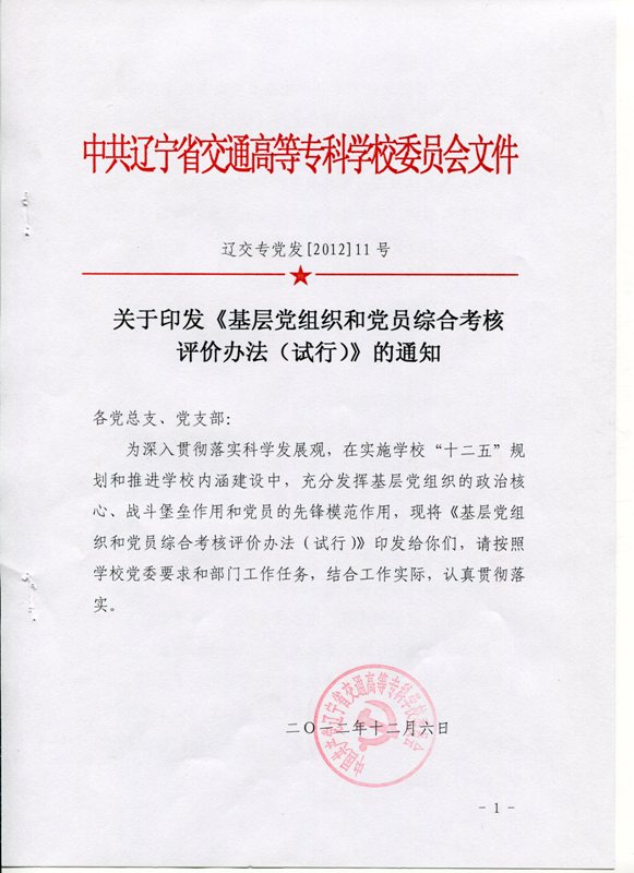 辽交专党发【2012】11号 关于印发《基层党组织和党员综合考核评价办法(试行)》的通知
