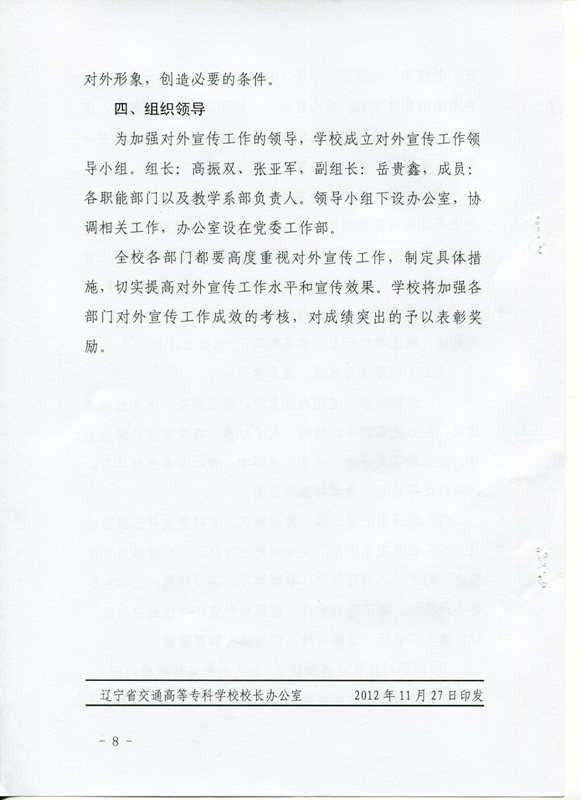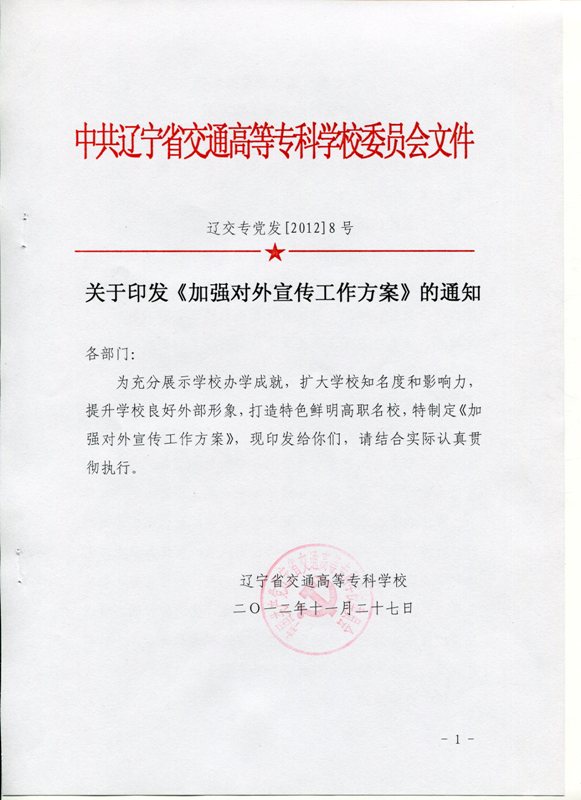 辽交专党发【2012】8号 关于印发《加强对外宣传工作方案》的通知