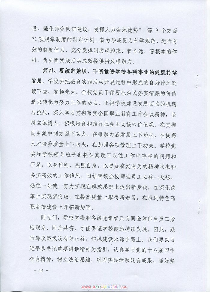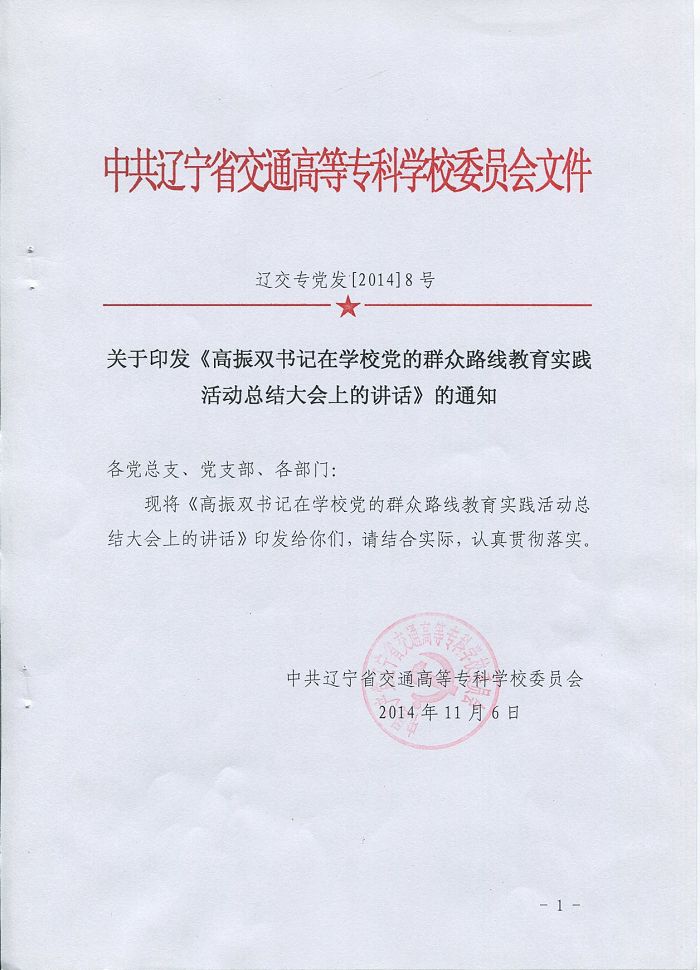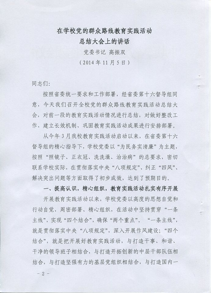 关于印发《高振双书记在学校党的群众路线教育实践活动总结大会上的讲话》的通知(党发[2014]8号)