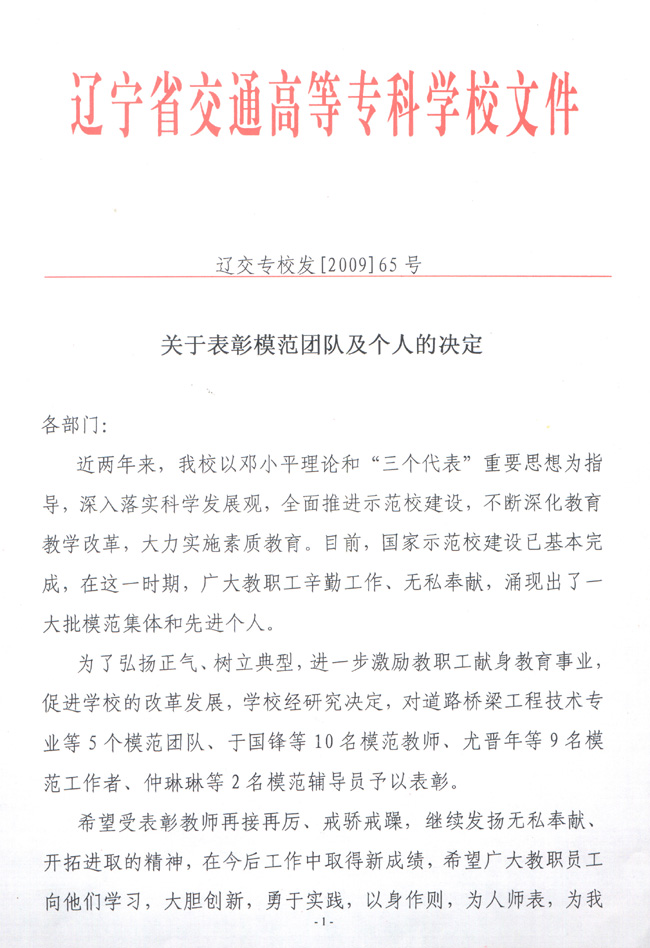 关于表彰模范团队及个人的决定