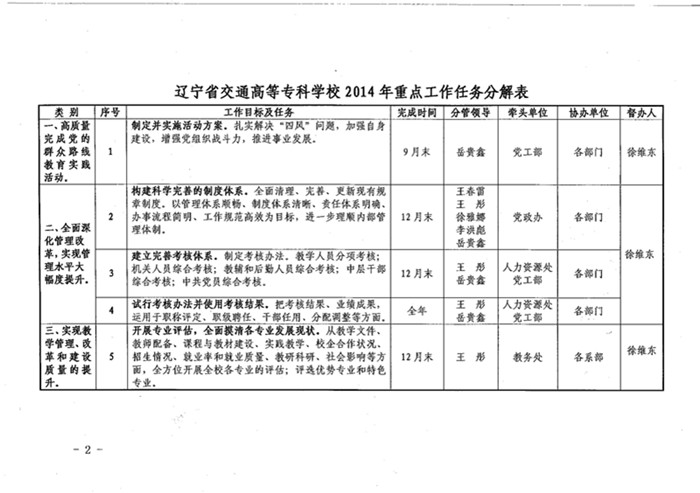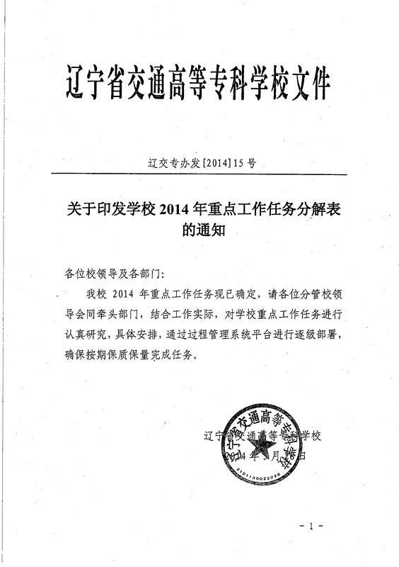 关于印发学校2014年重点工作任务分解表的通知