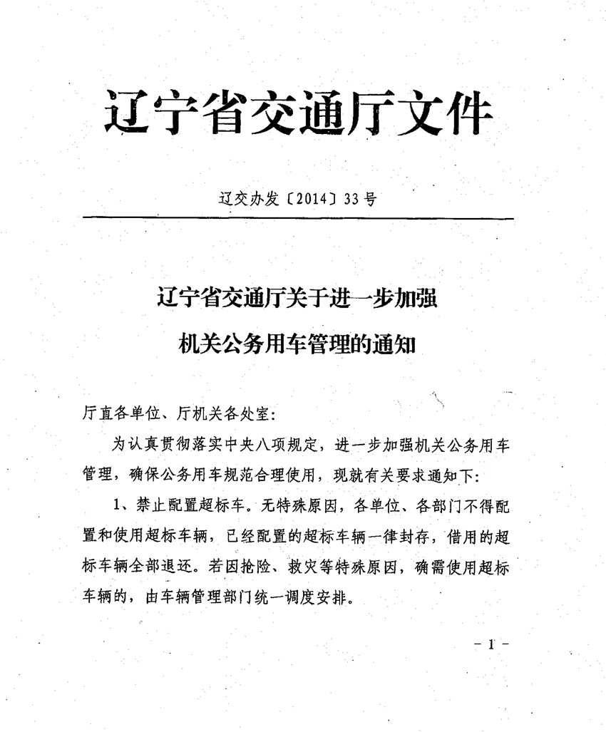关于转发《辽宁省交通厅关于进一步加强机关公务用车管理的通知》的通知