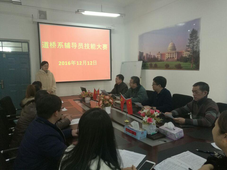 为提升辅导员工作技能,促进辅导员之间的经验学习与交流,道桥系于12月12日中午在系三楼会议室举办了辅导员技能竞赛。本次竞赛由系班子成员担任评委,全体辅导员参加。竞赛围绕“新媒体环境下辅导员如何开展工作”进行了主题演讲,并由辅导员现场抽取案例分析题目,就案例中的“问题关键点、解决思路、实施办法、启示”等结合所带班级实际阐述自己的做法。本次辅导员技能竞赛的成功举办,增进了辅导员间的交流与学习,为提高道桥系辅导员的工作能力,加强学生管理工作奠定了良好的基础。