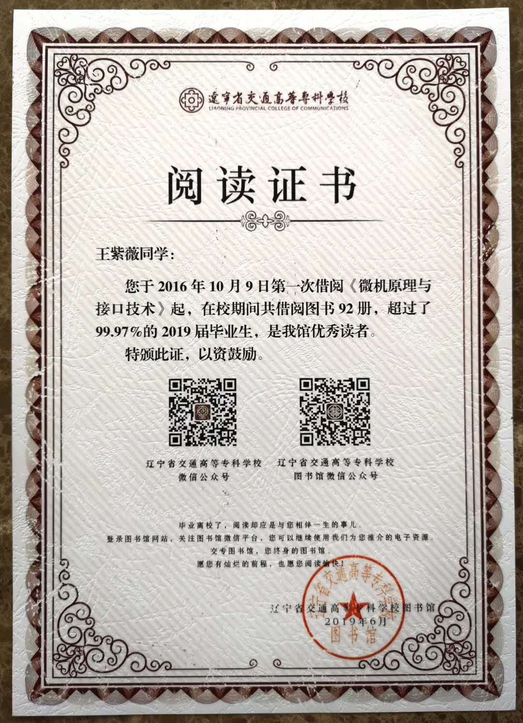 在2019届毕业生办理离校手续,准备奔赴就业岗位,开启人生美好篇章的前夕,图书馆汇总同学们三年来的借阅情况,向优秀读者发放《阅读证书》,鼓励他们离校不离书,养成终身阅读的良好素养。