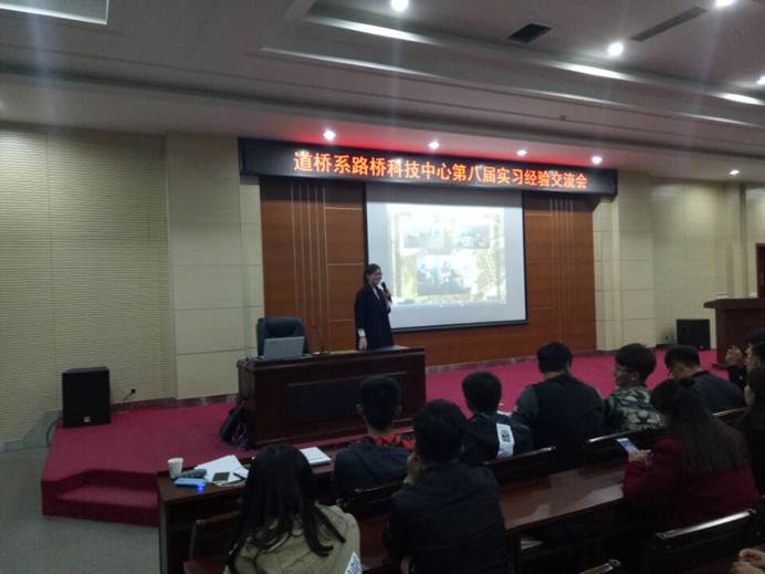 2016年10月25日晚6时,道桥系一年一度的实习经验交流会在学校大学生素质中心101报告厅成功举办。此项活动由道桥系路桥科技中心主办,道桥系学工办李云峰主任与460余名同学参加了此次交流活动。交流会上,部分优秀学生代表分享了自己在实习过程中的生活、学习和工作心得。使大一和大二的学生对自己所学专业有了进一步的了解,也对专业知识和技能、就业前景以及未来工作中常见问题的处理有了较为清晰的认识和心理准备。本次交流会的成功举办,对有效推动道桥系校外顶岗实习过程中的自我管理、自我提升和加强自我安全意识具有积极的推动作用。