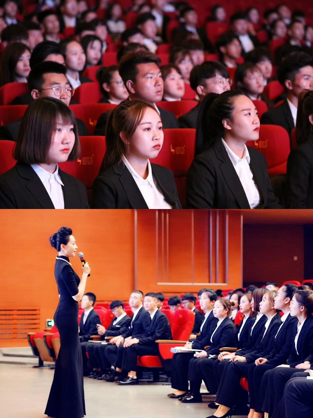 在礼仪培训环节,宫正老师邀请在座的同学上台进行现场体验教学,从站姿到坐姿,从行为活动到表情管理,礼仪规范面面俱到。同学们也热情回应,深深受教。宫老师以大方得体的讲述方式,深入人心的亲身示范,向同学们展示了如何成为一个拥有良好素养的人。而且指出了同学们身上出现的一些问题并提出解决办法。进一步完善了同学们对行为得体的认识