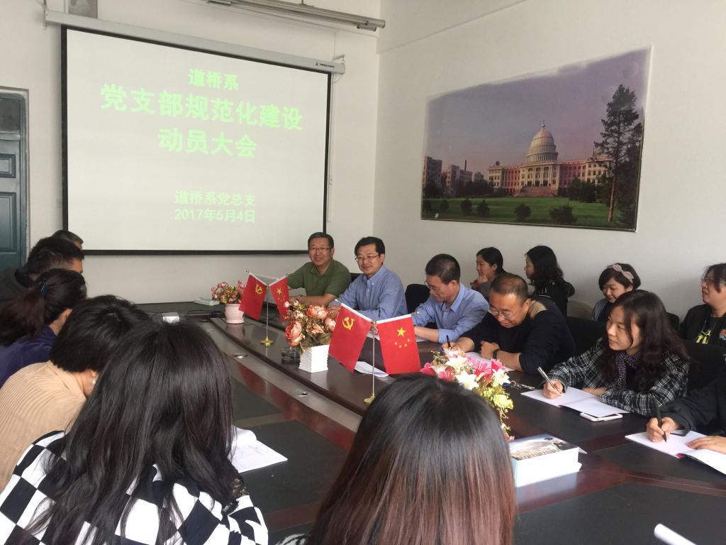 5月4日中午12点40分,道桥系党总支在系三楼会议室召开“党支部规范化建设”动员大会暨主题党课。会议由系党总支书记张家宇主持,系学生支部李云峰书记主讲。