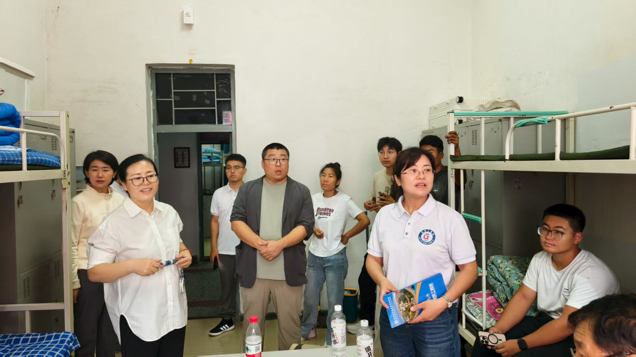 系党总支书记郑海超、系主任尹晶带领班子成员和专业教师深入新生宿舍,与同学们亲切交流,细致了解入校适应情况与实际困难,鼓励他们树立远大理想、做好学业规划。教师党员们积极回应新生关切,解答各类问题,将组织关怀落到实处。