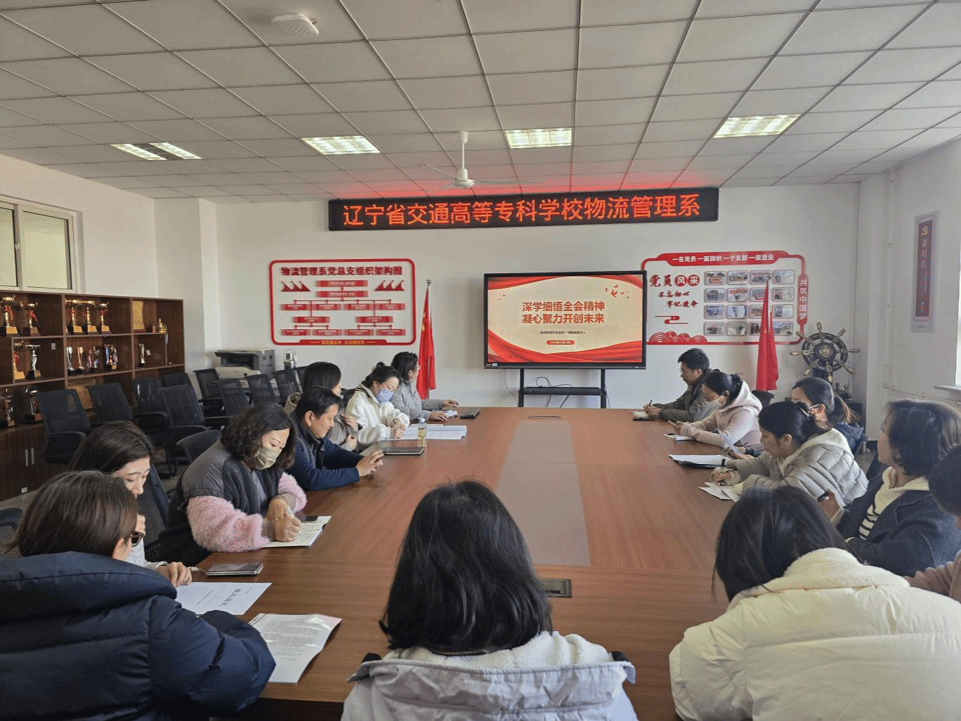 为深入学习贯彻党的二十届四中全会精神及“十五五”规划建议要求,切实把思想和行动统一到党中央决策部署上来,11月19日中午,物流管理系党总支在综合实训楼616会议室开展以“深学细悟全会精神 凝心聚力开创未来”为主题的11月份主题党日活动,全体党员参加此次活动。