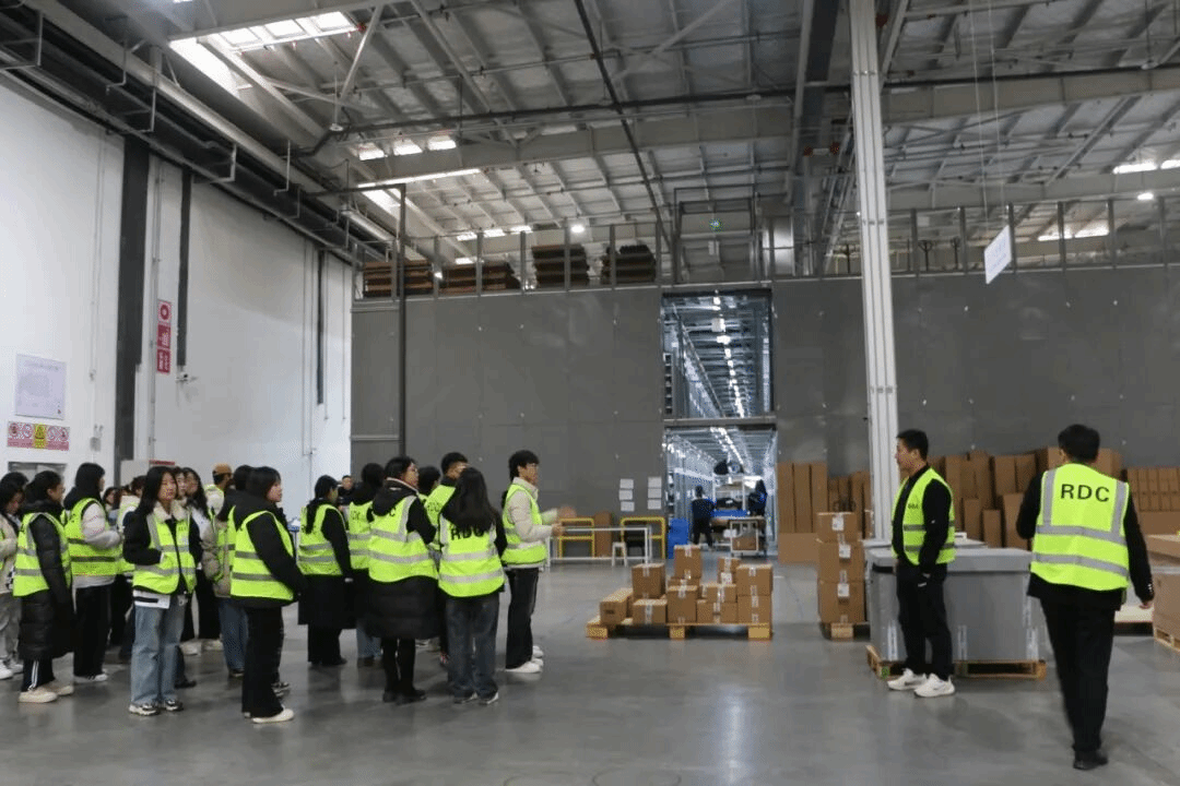 随后,师生走进宝马汽车零件仓储中心,现场观摩智能物流全流程。自动化分拣设备精准识别配件、高效分类,智能管理系统实时同步库存与出入库数据,工作人员通过终端即可完成精准调度。负责人结合实操场景,深度解读仓储数字化管理的核心逻辑与技术应用,让抽象的专业知识变得具象可感。