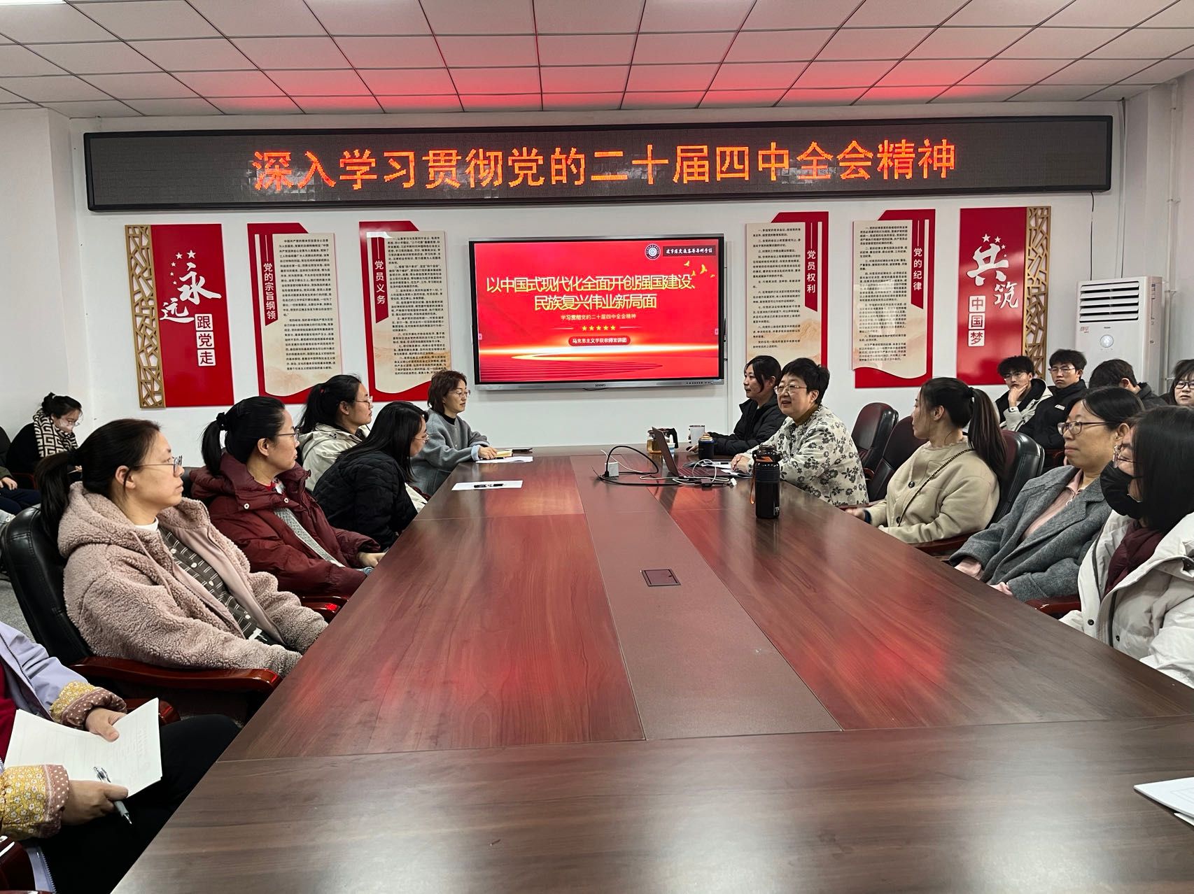 11月26日下午,信息工程系党总支在综合实训楼502党员活动室召开集中学习会议,深入学习贯彻党的二十届四中全会精神。会议由信息工程系党总支书记王喜华主持,信息工程系全体教师和部分学生代表参加。