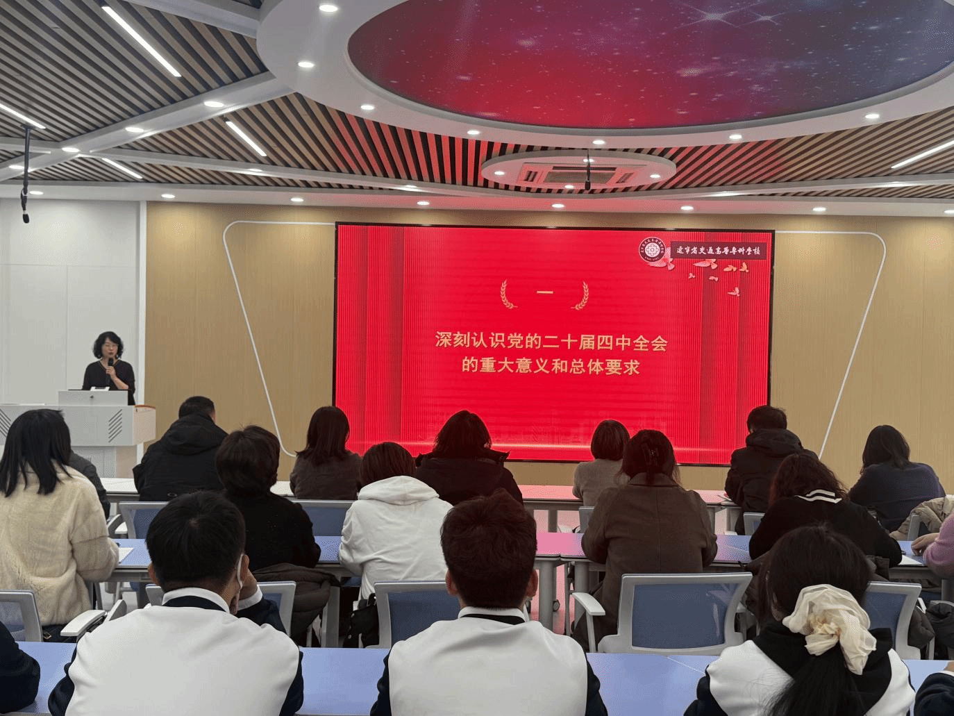 活动伊始,学校学习贯彻党的二十届四中全会精神教师宣讲团成员、马克思主义学院副教授侯越以《以中国式现代化全面开创强国建设、民族复兴伟业新局面——学习贯彻党的二十届四中全会精神》为题作专题宣讲。侯越老师的宣讲紧扣全会核心要义,从中国式现代化的理论创新、实践路径、重大意义等方面进行系统阐释,既有理论高度又有实践深度,既立足国家发展大局又贴合学校工作实际,帮助与会人员进一步理清思想脉络、深化理解认识。