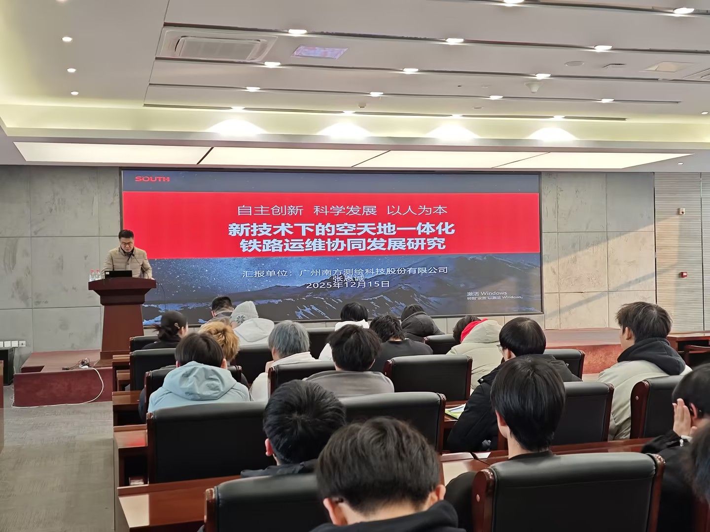 为深化专业教学改革,搭建产学研交流平台,12月15日下午,公路与铁道工程系邀请南方测绘集团高铁公司副总经理张恩诚在公铁系五楼报告厅举办了“新技术下的空天地一体化铁路运维协同发展研究”学术报告。报告会由公路与铁道工程系副主任徐义洪主持,公铁系200余名师生参加了报告会。