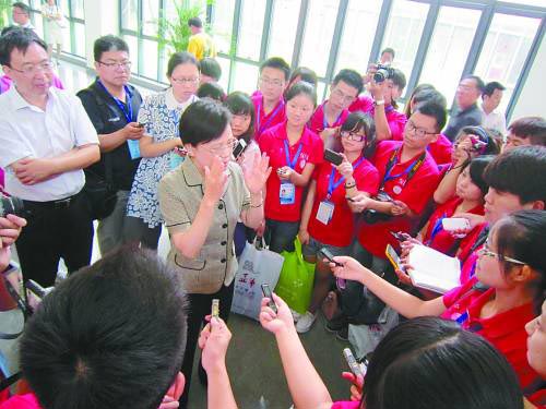 教育部副部长鲁昕与50名学生记者交流。黄河水利职业技术学院 王亦赫摄 一个身穿浅绿色正装,面容亲切的女士出现在我们的视野中。 “鲁部长!鲁部长!”原本安静地等待着的我们瞬间欢腾了起来,蜂拥般地围住了国家教育部副部长鲁昕女士。 看着眼前我们这一群密密麻麻身着红色服装的全国职业院校记者团的学生记者,鲁部长非常高兴地和我们打招呼,得知我们来自全国各地,鲁部长轻轻抬起手一个一个地指着我们询问:“同学们,你们都是来自哪里啊?”“天津!”“上海!”“我是海南的……”我们兴奋地回应着鲁部长。鲁部长边听边微笑地点头,不忘记回头询问记者团的领队:“有没有来自新疆和西藏的孩子?”得知这次新疆和西藏的孩子还没有参与到记者团的队伍中,鲁部长专门叮嘱:“明年要让这两个地区的孩子也参与进来。” 面对着我们这群初出茅庐的学生记者手里拼命高举着的录音笔和摄像机,鲁部长欣慰地笑了笑,用清晰的声音告诉我们:“同学们,我要告诉大家两个好消息!”原本欢腾的我们瞬间安静下来,只剩下不停发出“咔嚓”的闪光灯的声音。鲁部长微微提高了音量:“第一个好消息,今年高职生的就业排名非常靠前!”鲁部长的双眼深情地看着我们说:“作为新时代的高职生,我们要有顶天的能力。”她高高地举起右手,用力地挥了挥拳头,又重重地往下挥拳,声音宏亮地说:“同时也要有立地的本领!”鲁部长紧接着告诉我们:“第二个好消息,教育部正在进行重大的教育制度改革,我们读高职的孩子,可以继续选择学业道路,可以读本科,读博士硕士!” 这两个消息对我们高职生来说无疑是非常有益的大事件,同伴们都“刷刷”地认真在本子上记录下鲁部长的话。 当话题涉及高职生的继续教育问题时,鲁部长微微停顿一下,深情地谈起自己的求学之路,她说:“同学们你们还记得1977年的全国第一次恢复高考吗?我在高考之前,也是一名工人。后来,我有机会参加了高考,成为了大学生,这是因为我有立地的本领!”她热情地鼓励眼前的每一个人:“不要认为高职生不如本科生,我们高职生,学的是立地的本领,有了立地的本领,才能顶上天!” 最后,鲁部长不忘叮嘱在场的学生,在学好专业技能的同时,更要加强自身的人文素养,踏踏实实学好基本功,用立地的本领,勇敢地顶出自己的一片蓝天! |