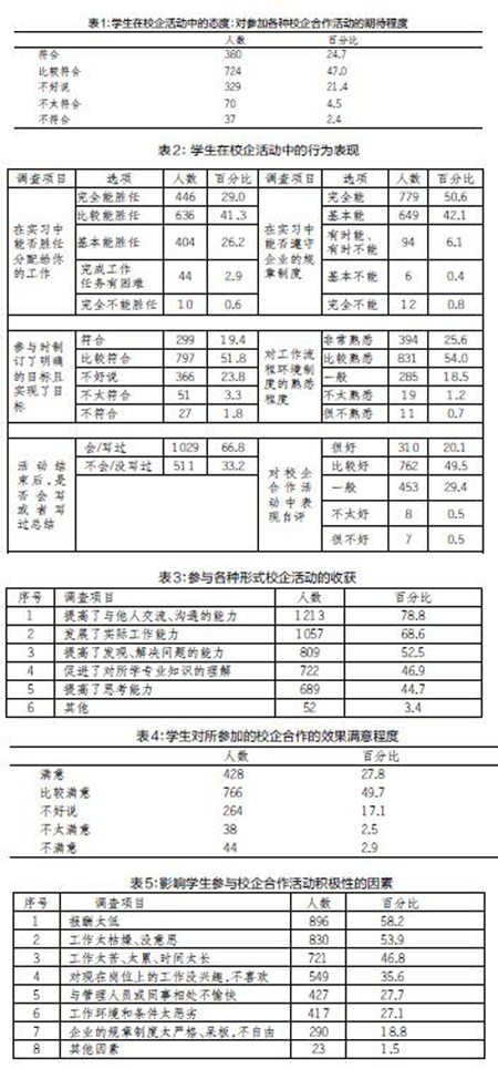 校企合作是保障、提高职业教育质量的关键环节,学生是校企合作的主体,校企合作的效果最终应体现在学生的工作能力以及其他素养的良好发展之上。已有的研究比较关注校企合作中企业的状况,而对于学生在校企合作中的行为、需要和感受有所忽视。