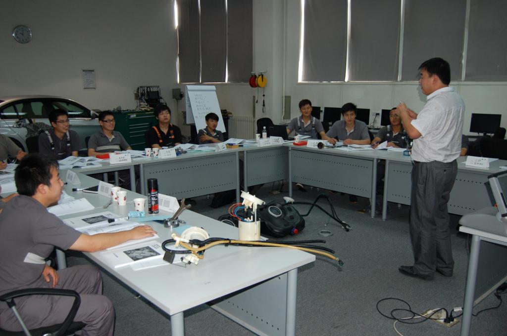 在汽车工程系教学区,国内第一个宝马培训基地坐落在此——漂亮的mini cooper成为师生们交流的教具,U字型的课桌设计完全以德国宝马的教学要求作为准则。在“汽车维修与检测实训中心”,省交专分别与华晨宝马、德国巴斯夫、一汽丰田公司合作成立了宝马沈阳培训基地、巴斯夫修补漆培训中心和丰田T-TEP学校,构建了"学校与企业培训机构一体化"的校企合作模式。而这个专业的毕业生可以直接走上名车后市场服务的岗位。
