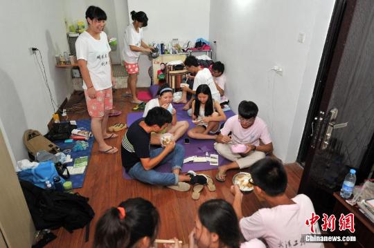 每人100元过15天。正值暑期,15名来自武汉工程科技学院的大学生,正在福州接受一次生存挑战。这支队伍由9名女生和6名男生组成,当中最小的生于1997年,最大的也才21岁。他们是7月15日抵达福州的,此行是为了实践“读万卷书行万里路”这一理念。“学校每年都举行这个活动,我们是从报名的几百人里选出来的。这些天我们不仅要打工赚钱,还要做一到两场公益活动。”队长陈明辉说。图为同学玩坐在地上吃晚饭。陈明辉说,今天收入不错,买了一斤肉沫改善一下......