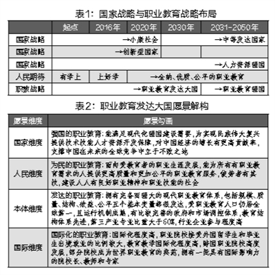 职业教育发达大国的愿景,可以从国家、人民、本体和国际化四个维度进行解构和勾画(见表2)。
