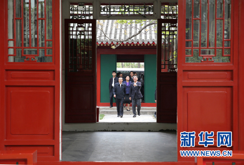 4月15日,中共中央政治局常委、国务院总理李克强到清华大学和北京大学就教育改革发展和实施创新驱动发展战略进行考察。这是李克强在北京大学国家发展研究院考察。 新华社记者庞兴雷摄