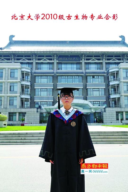 2014年6月,比张博然低两级的北大古生物学专业学生薛逸凡,在人人网上传了一张在北大图书馆前的独照。穿学士袍、戴学士帽的她与大多数毕业生并无二致,引人注目的是她头顶的一行红字“北京大学2010级古生物专业合影”。