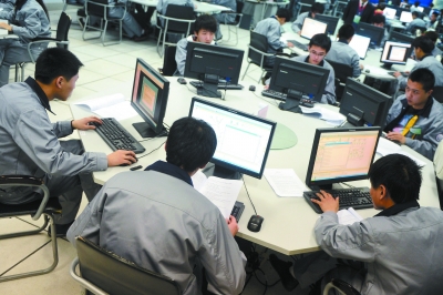 在长春举行的2013年吉林省高职院校技能大赛上,学生在进行计算机网络组建及安全应用比赛。(资料图片)