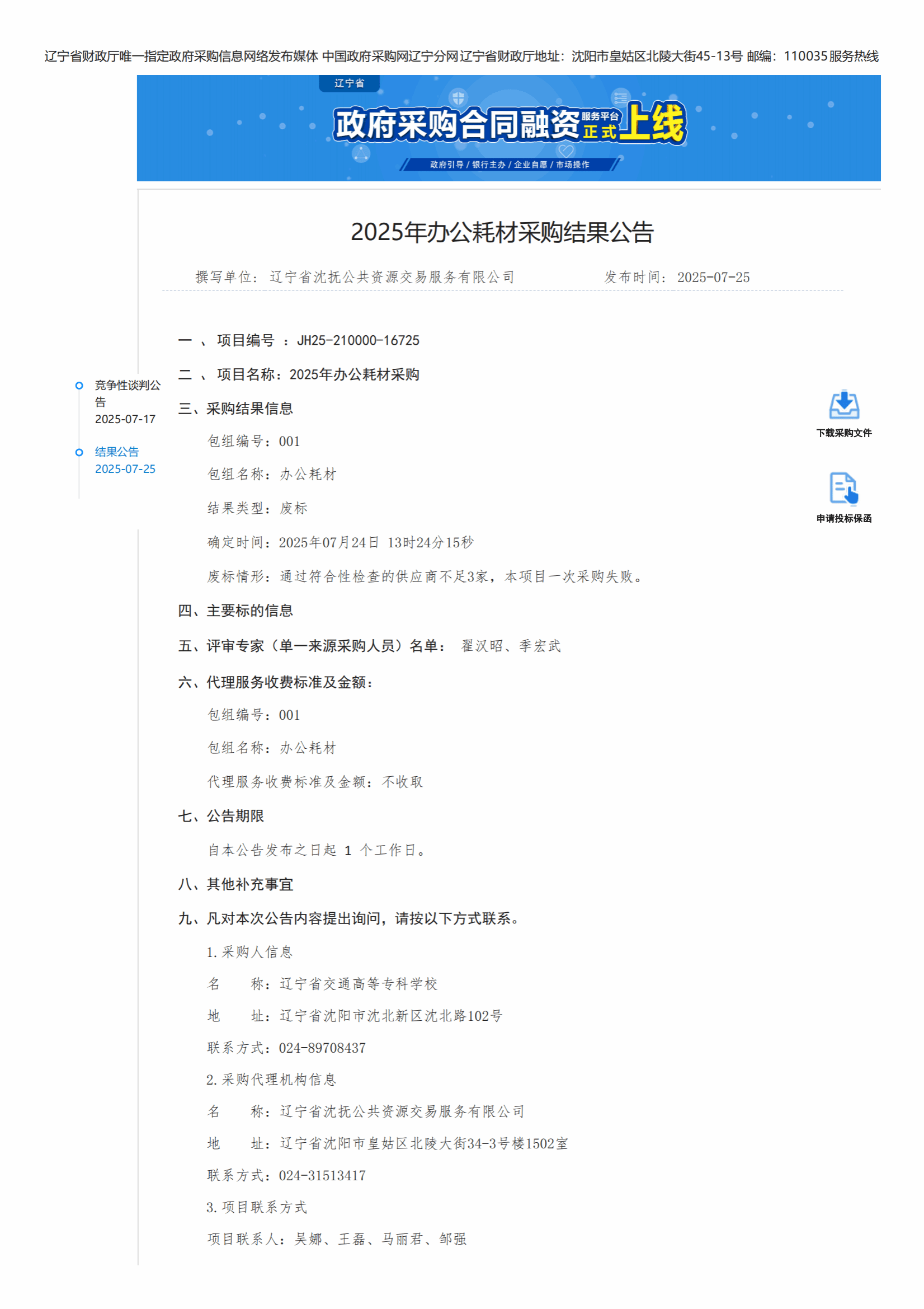 2025年楼宇屋面防水修缮工程竞争性磋商公告(LNCC2025123)