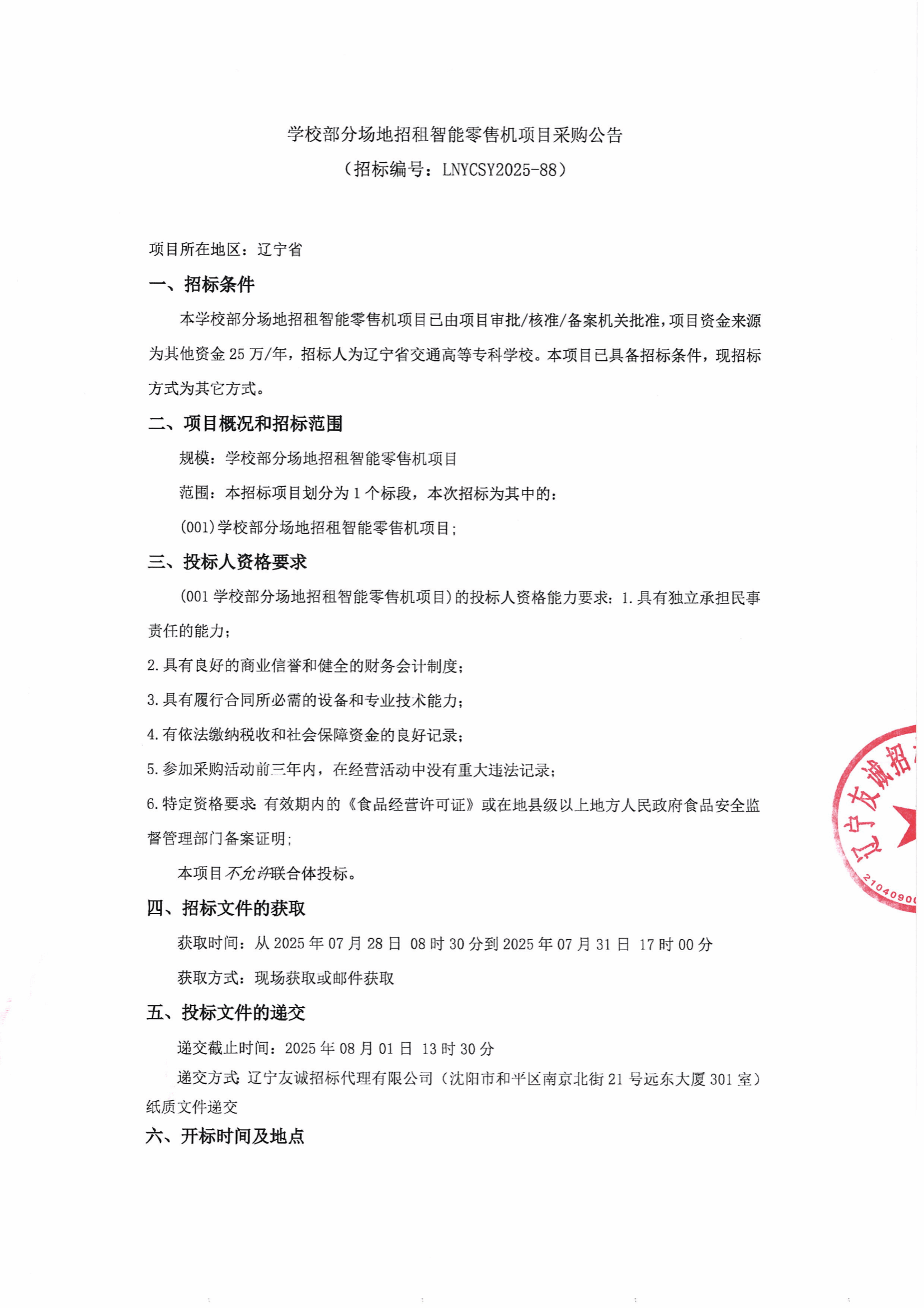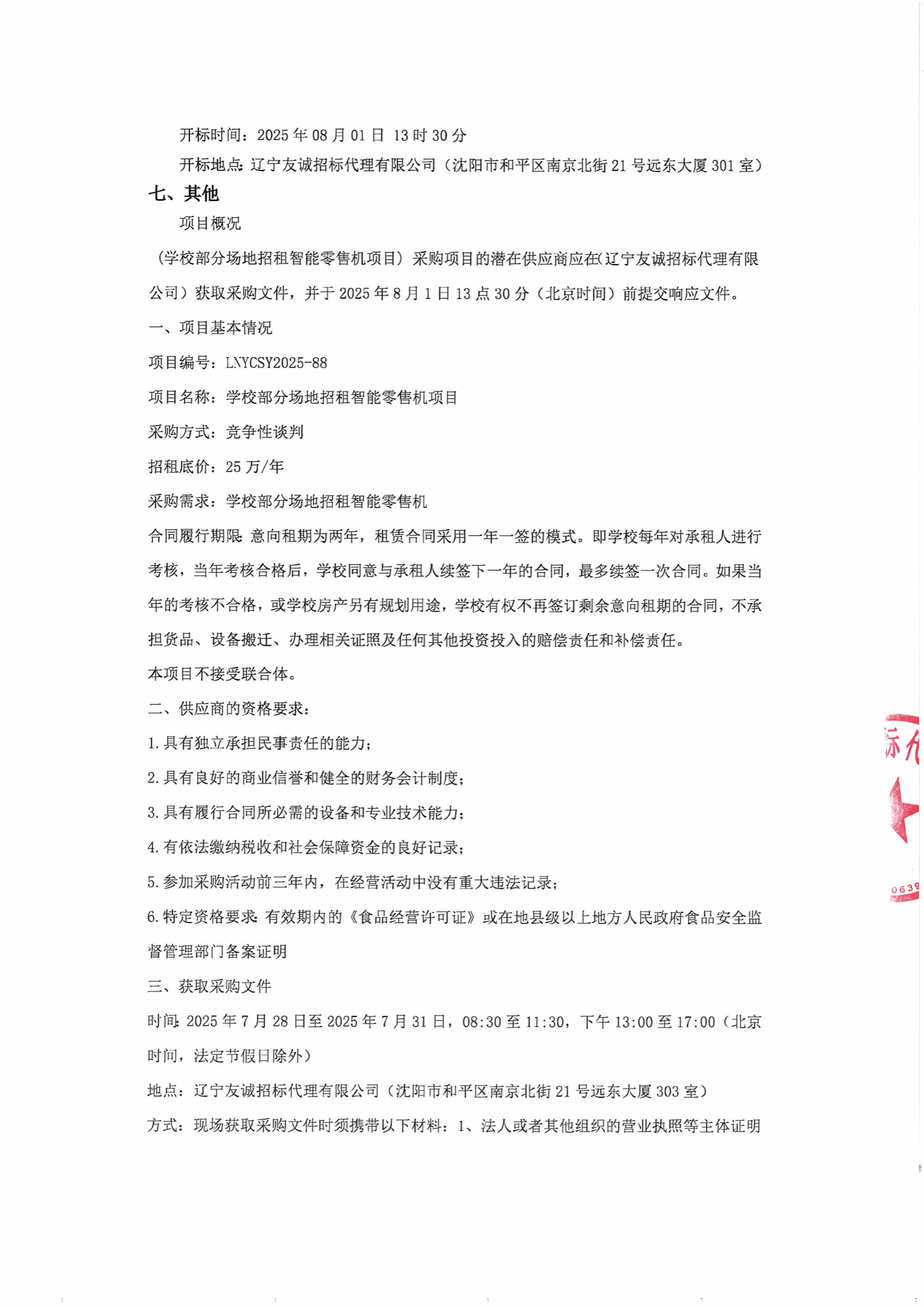 学校部分场地招租智能零售机项目欧亿体育集团有限公司(LNCC2025091)