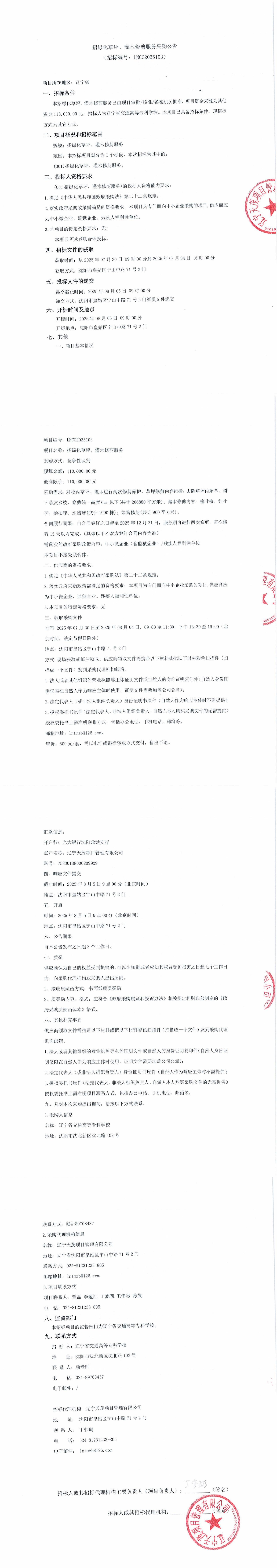 招绿化草坪、灌木修剪服务采购公告(LNCC2025103)