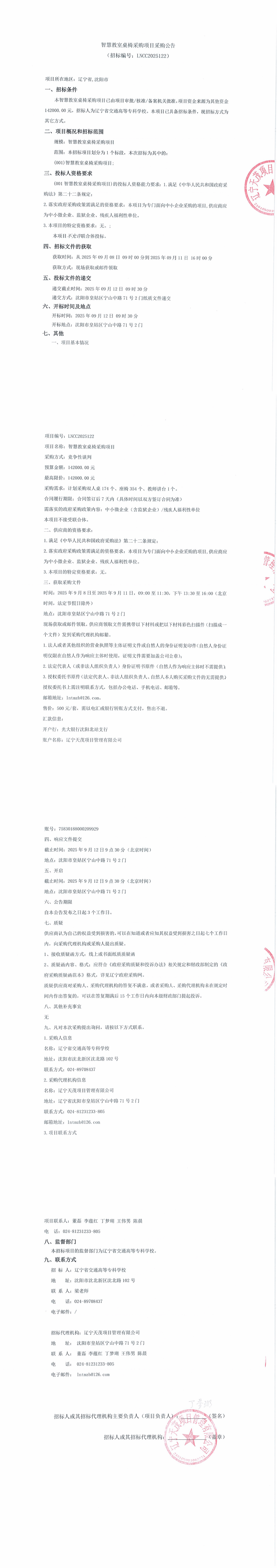 智慧教室桌椅采购项目采购公告(LNCC2025122)