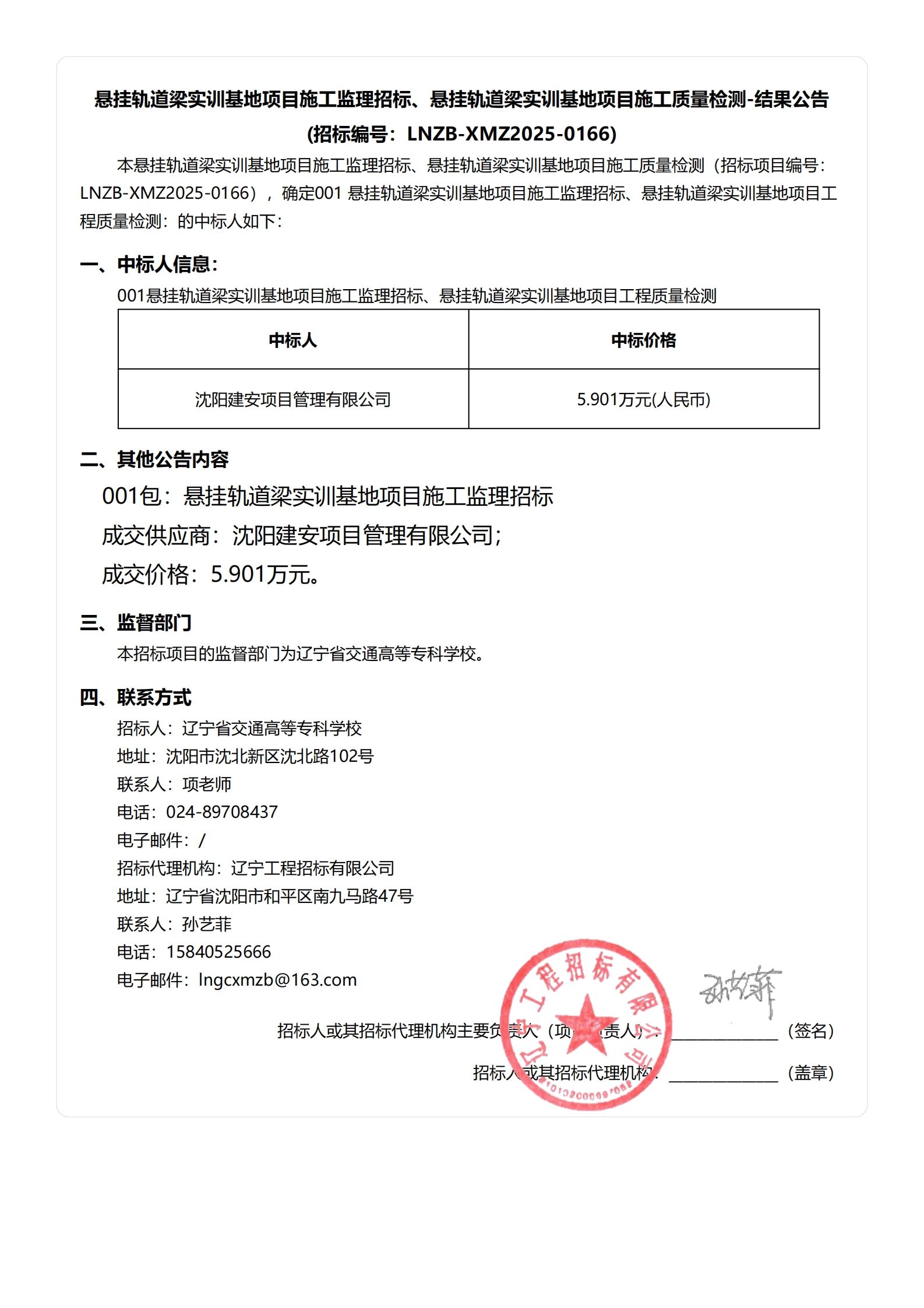 悬挂轨道梁实训基地项目施工监理招标、悬挂轨道梁实训基地项目施工质量检测结果公告