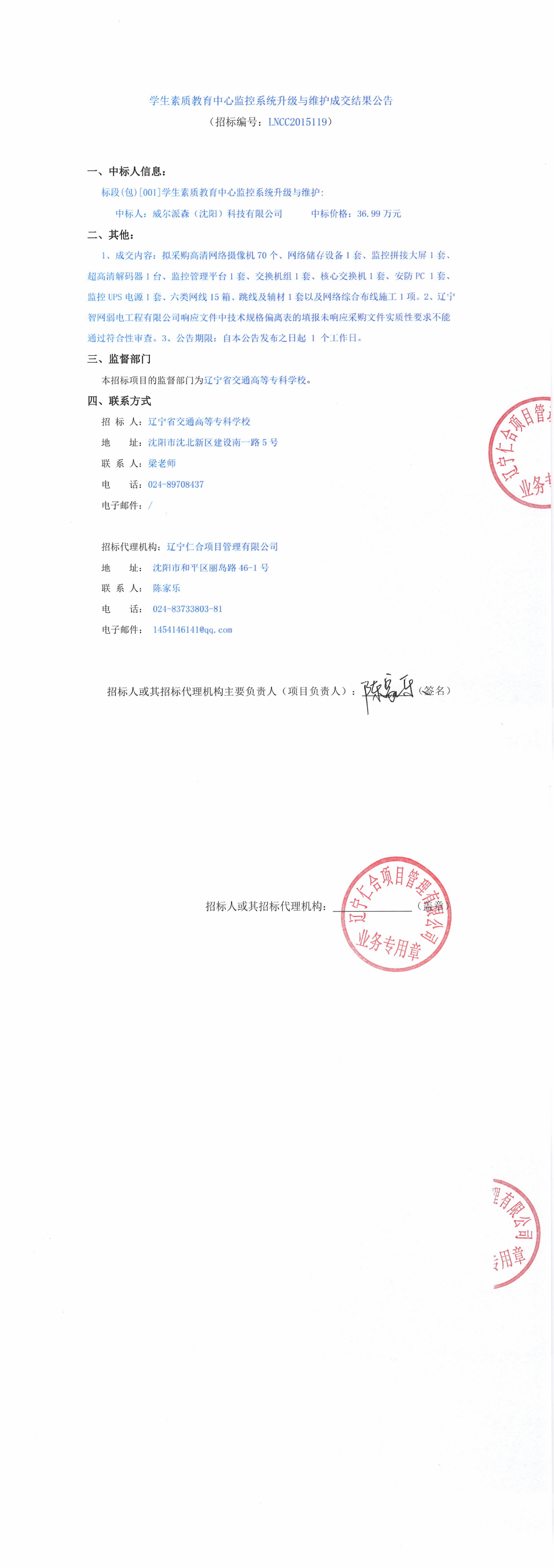 学生素质教育中心监控系统升级与维护项目结果公告(LNCC2025119)