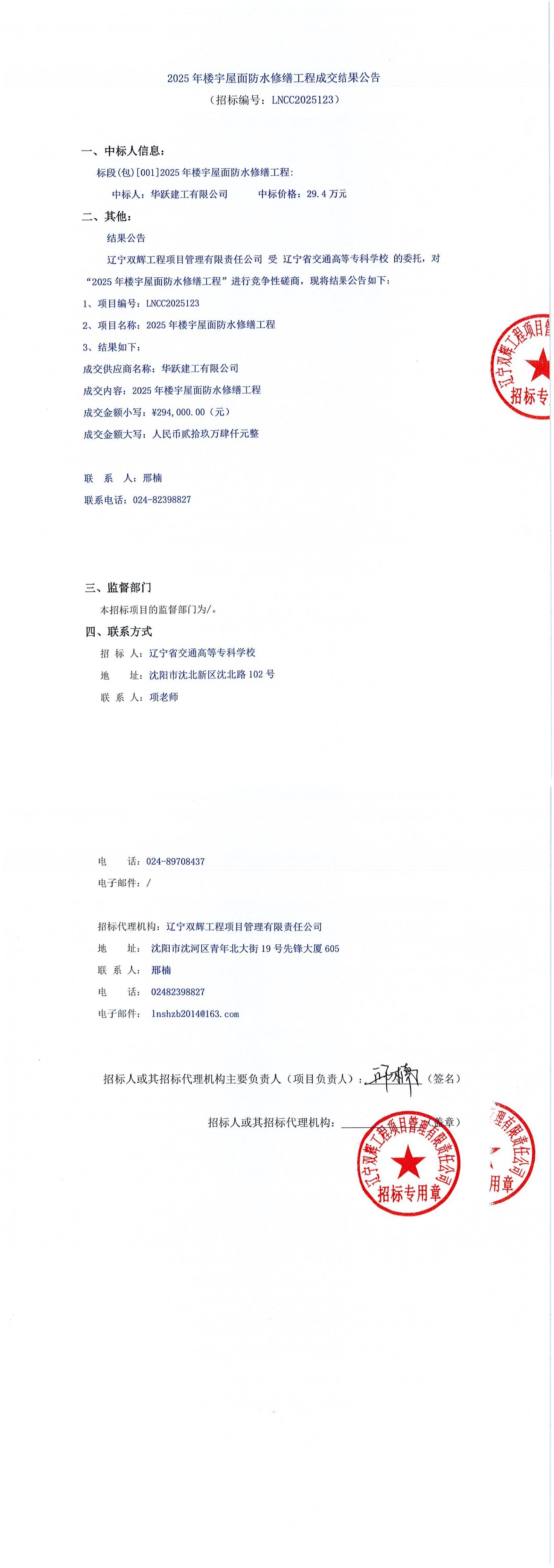 2025年楼宇屋面防水修缮工程成交结果公告(LNCC2025123)