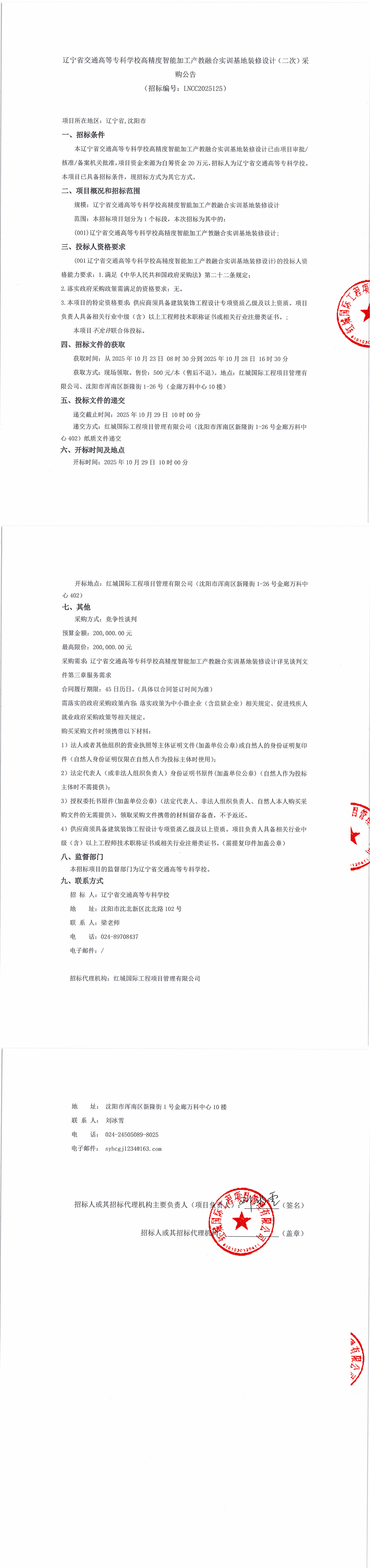 欧亿体育高精度智能加工产教融合实训基地装修设计(二次)采购公告(LNCC2025125)