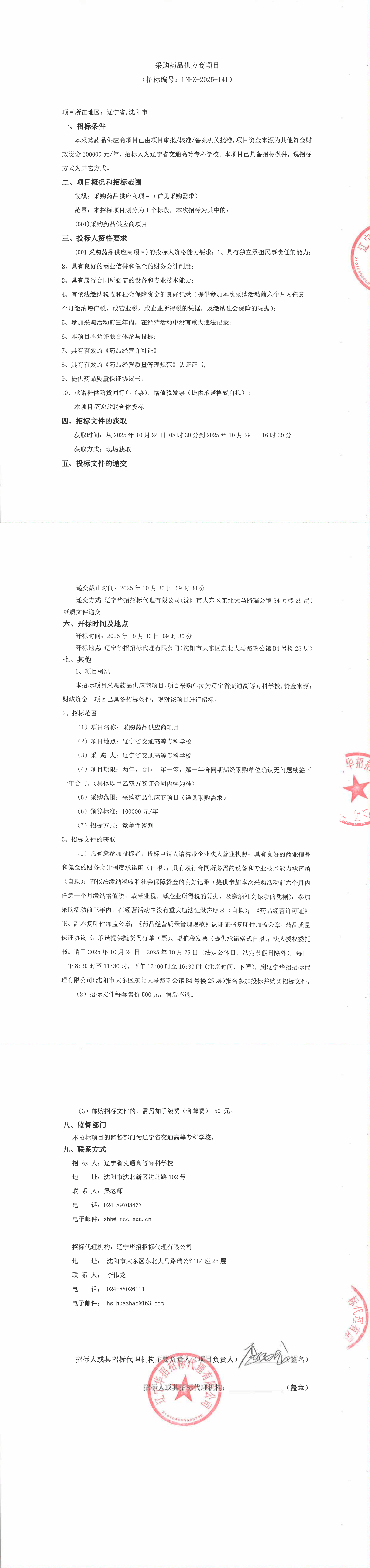 采购药品供应商项目欧亿体育集团有限公司(LNCC2025143)