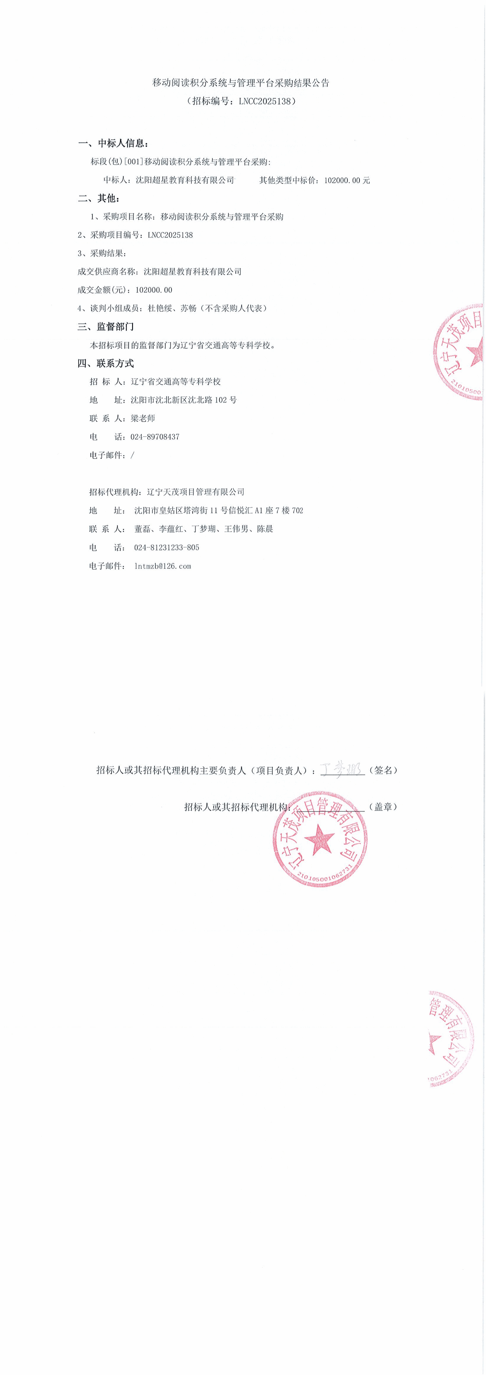 移动阅读积分系统与管理平台采购结果公告(LNCC2025138)
