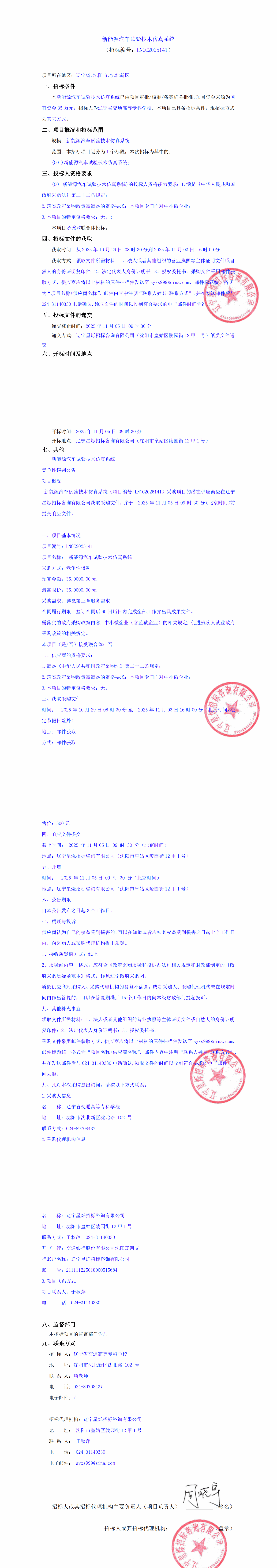 新能源汽车试验技术仿真系统二次公告(LNCC2025141)