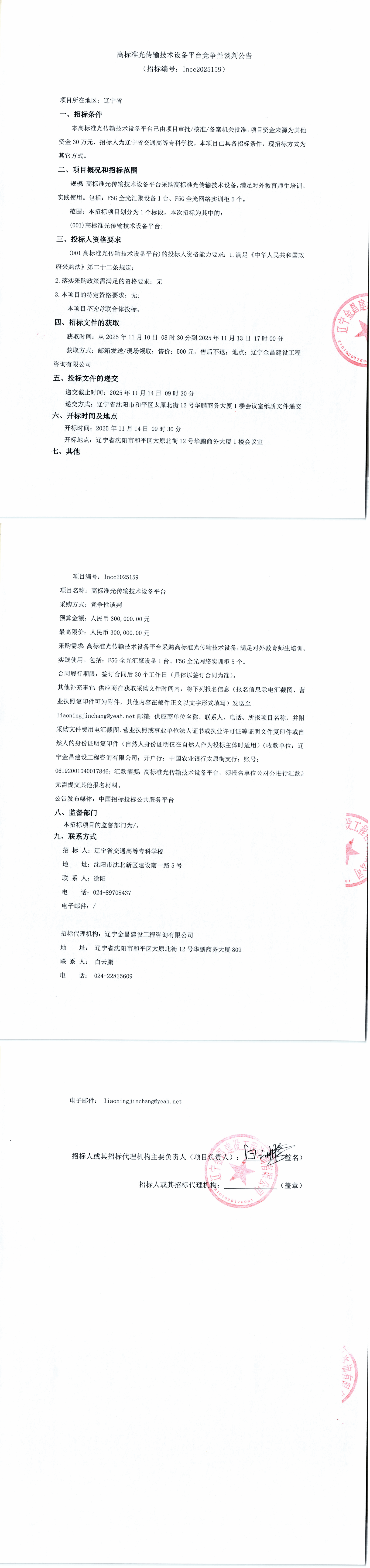 高标准光传输技术设备平台项目欧亿体育集团有限公司(LNCC2025159)