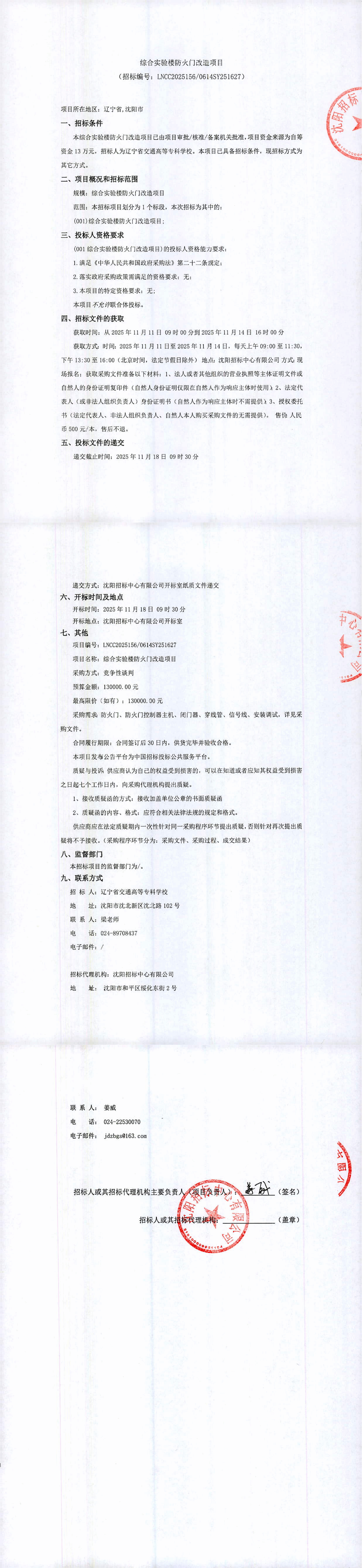 综合实验楼防火门改造项目欧亿体育集团有限公司(LNCC2025156)