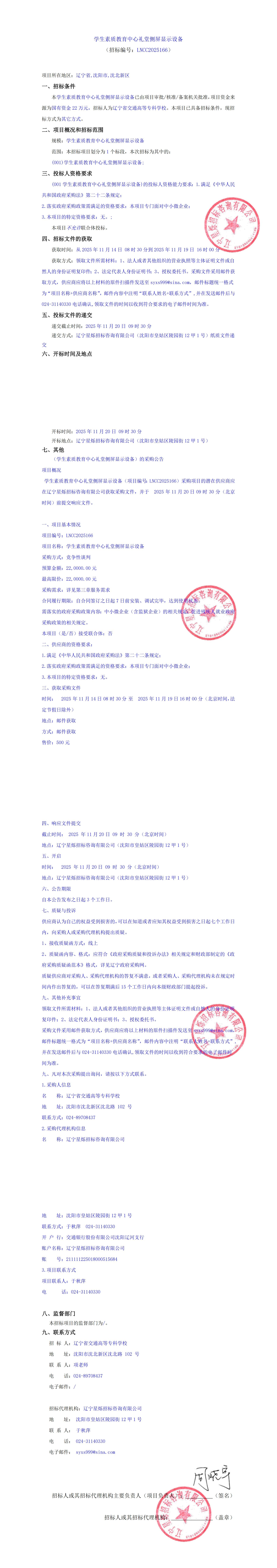 学生素质教育中心礼堂侧屏显示设备采购公告