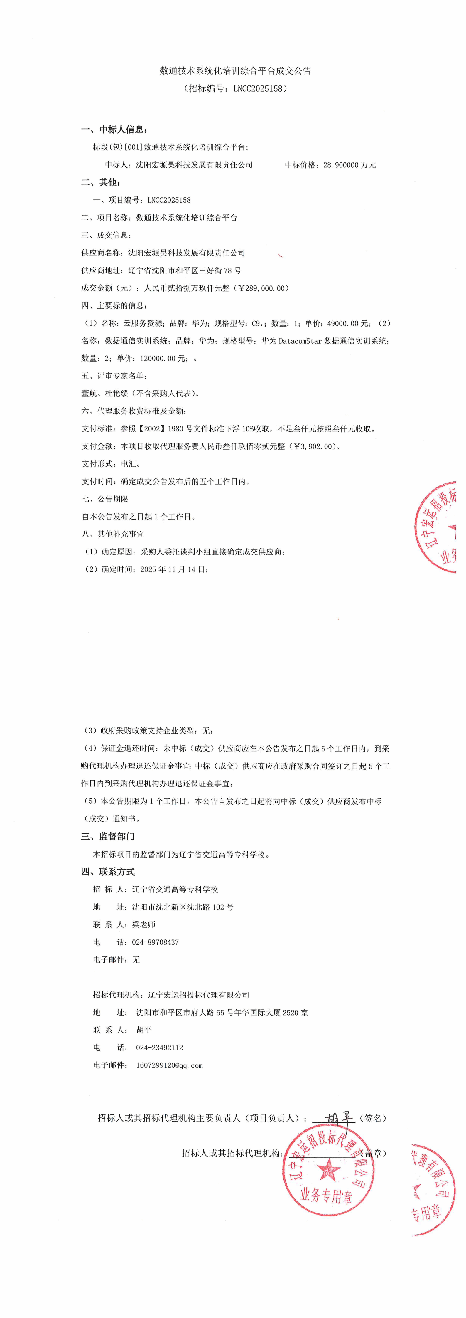 高标准光传输技术设备平台成交公告(LNCC2025159)