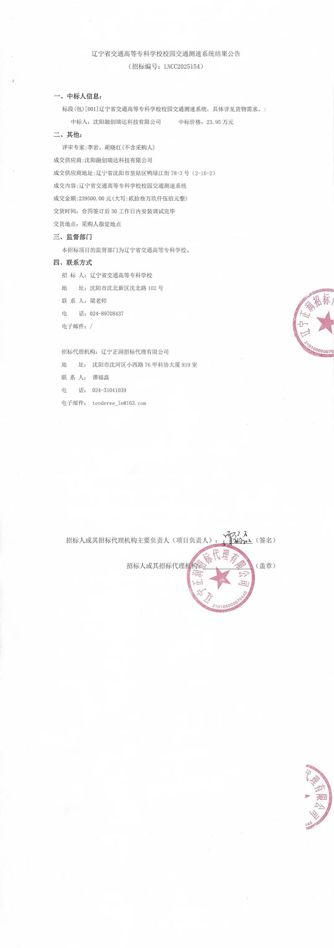 欧亿体育校园交通测速系统结果公告 (LNCC2025154)