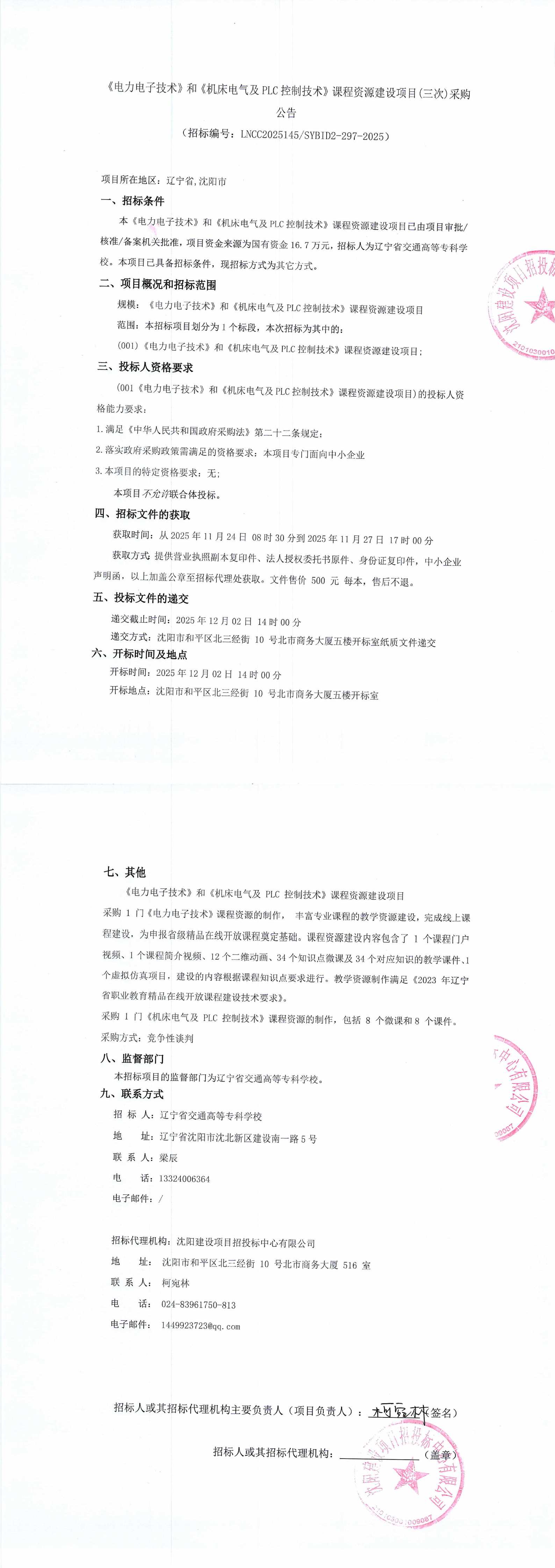《电力电子技术》和《机床电气及PLC控制技术》课程资源建设项目欧亿体育集团有限公司三次(LNCC2025145)