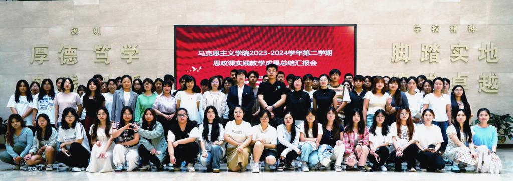 为深入学习贯彻习近平新时代中国特色社会主义思想,全面落实立德树人根本任务,推进我校思政课实践教学改革创新,马克思主义学院于6月24日在大学生素质中心101举办了2023-2024学年第二学期思政课实践教学成果总结汇报会,《思想道德与法治》和《毛泽东思想和中国特色社会主义理论体系概论》两门课程进行成果展示。马克思主义学院院长董悦、副院长戴茹、毛泽东思想和中国特色社会主义理论体系概论教研室主任侯越、形势与政策教研室主任关旭、习近平新时代中国特色社会主义思想概论教研室主任王帅乔以及获奖教师和学生参加会议,思想道德与法治教研室主任李萌旸主持会议。