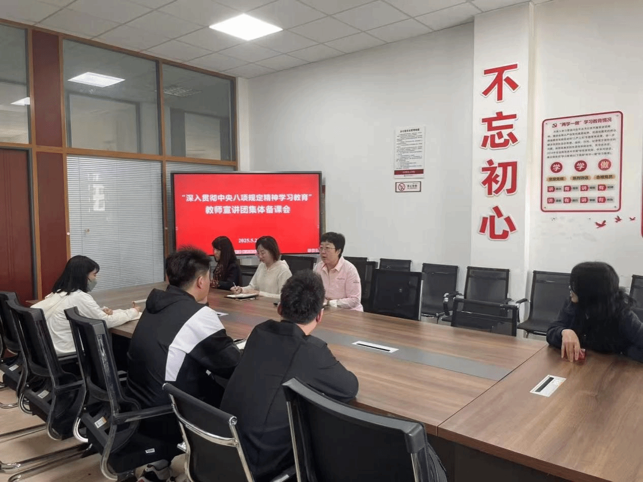 为深入贯彻中央八项规定精神学习教育,落实学校《深入贯彻中央八项规定精神学习教育工作方案》(辽交专党发[2025]31号)和学校有关要求,扎实推进学习宣传贯彻工作,我校深入贯彻中央八项规定精神学习教育教师宣讲团于5月21日在综合办公楼421会议室召开了集体备课会。