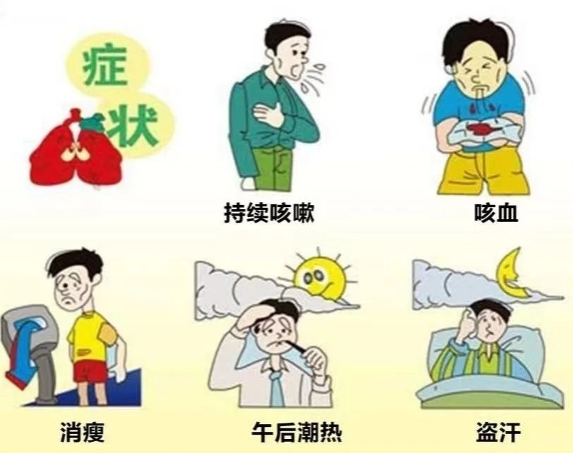 肺结核最常见的症状就是咳嗽、咳痰,如果这些症状持续两周以上,就应该高度怀疑得了肺结核。此外肺结核还会伴有痰中带血、低烧、夜间盗汗、午后发热、胸痛、疲乏无力、体重减轻等症状。