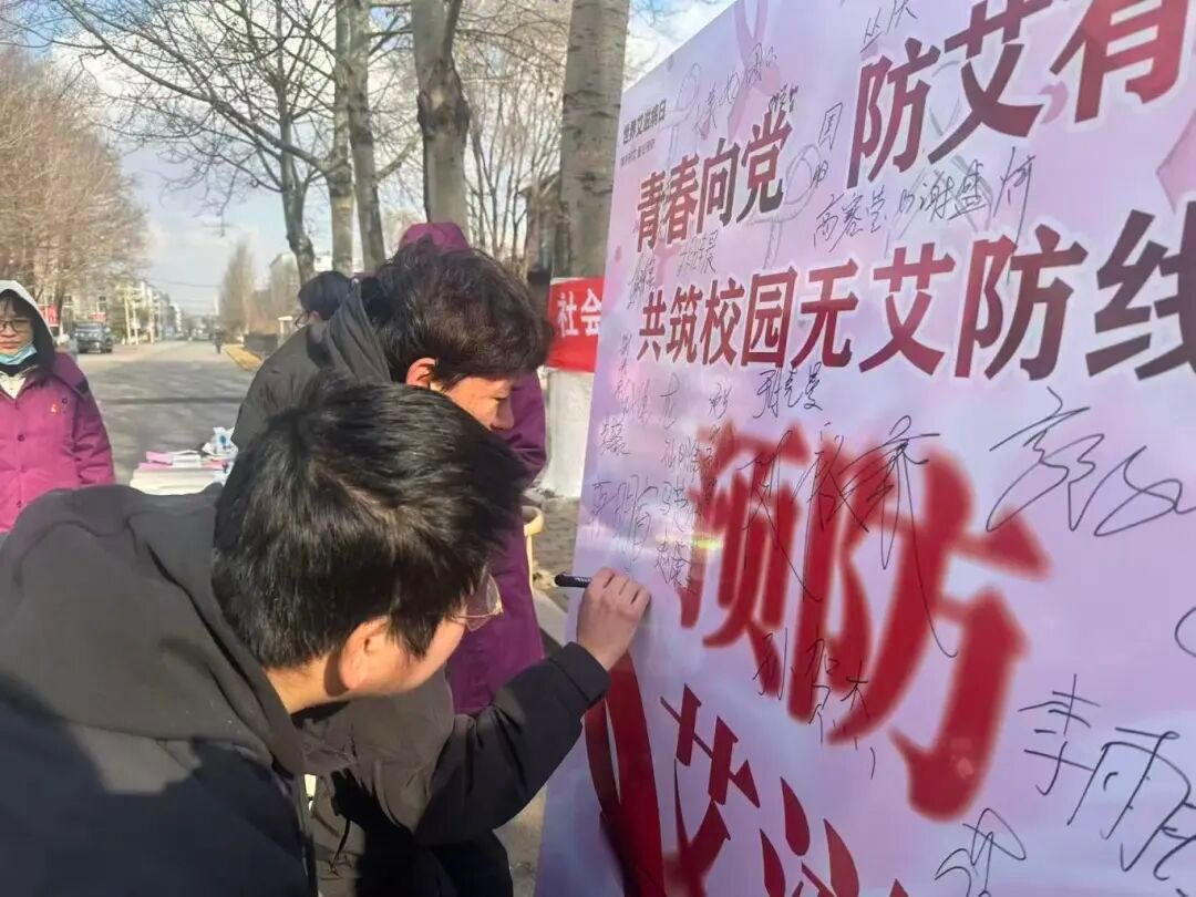 主题宣传板前,同学们纷纷驻足,郑重签下自己的姓名。一笔一划不仅是个人承诺,更是对成为“防艾知识传播者、无歧视理念践行者”的公开宣告,展现出青年一代尊重生命、勇于担当、共建健康校园的积极姿态。