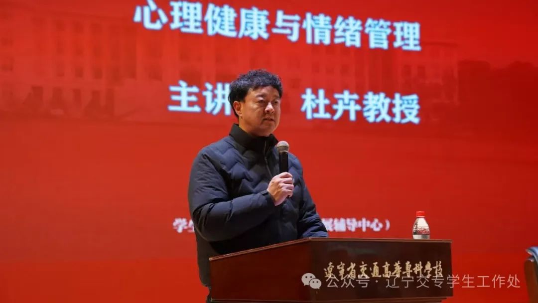 报告会前,学生工作处副处长李闯在讲话中提到,为深入贯彻落实习近平总书记关于加强学生心理健康教育工作的重要指示批示精神,进一步提升学校心理育人工作质量,提升大学生心理健康水平,学校特邀请辽宁省心理名师杜卉教授围绕“心理健康与情绪管理”主题为学校师生做讲座,希望师生们能够将所学的心理健康知识运用到实际生活和学习中,关注自身和他人的心理健康状况,积极采取有效的措施维护心理健康。